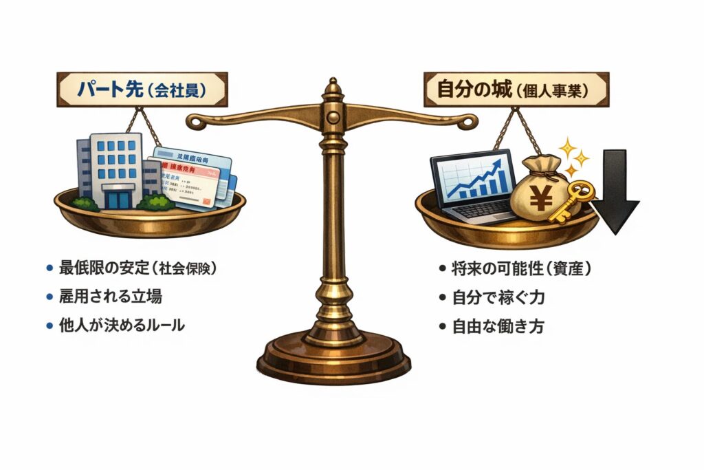 そんな、いわれのない嫉妬や偏見を招くだけ。 私の目的は、パートで「社会保険」という最強の盾を手に入れつつ、自分の事業を静かに育てること。職場の人間関係をかき乱すのは、戦略的に見て「得」がありません。